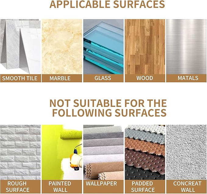 - ADHESIVE APPLICATION TIPS: Not for painted, wallpapered, or textured walls. Ensure a dry, clean surface before attaching, and wait 24 hours for optimal adhesion.