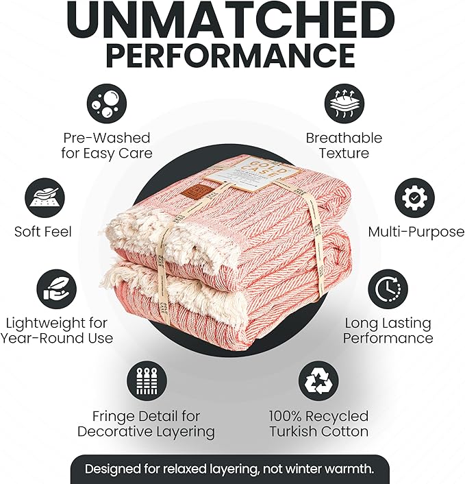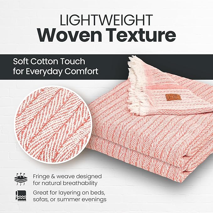 - LIGHTWEIGHT LAYERS FOR RELAXED MOMENTS: Woven from 100% recycled Turkish cotton, this breathable and cute throw blanket adds a soft, textured touch to your space; made for layering on the couch, tossing over your shoulders, or adding a laid-back look to your decor