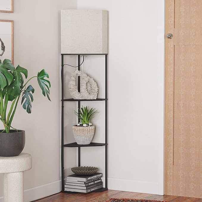 - 【Fabric Lampshade】 The floor lamp corner uses a black shelf with a beige linen lampshade, which is not only elegant and generous, but also suitable for a variety of home styles. The fabric lampshade can make the light changes softer and play a role of comfortable eye protection.