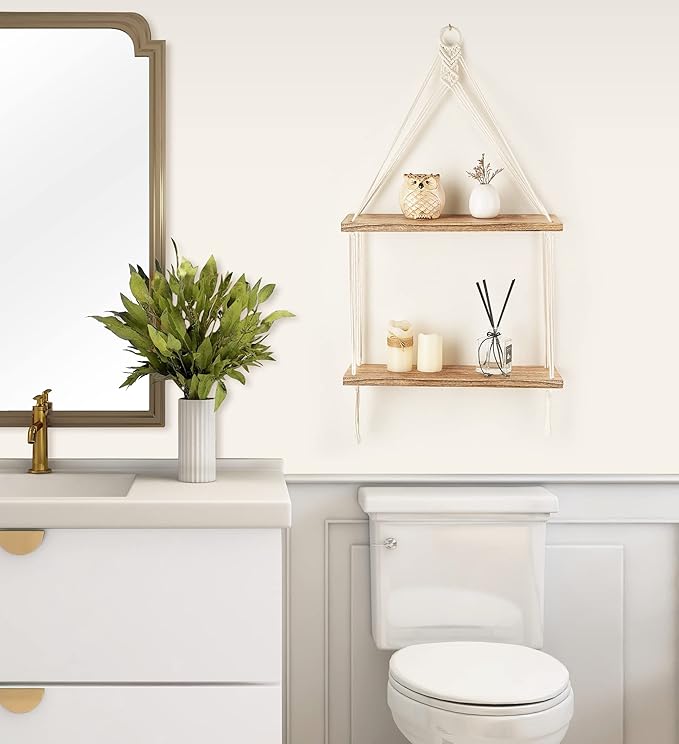- Great Gift: Macrame 2 tier hanging shelf is very suitable for people who love boho style. If you are looking for the perfect decorations in a minimalist style, or wanna give gifts to people who like urban bohemian decorations or unique home furnishings, this will be a great housewarming gift.