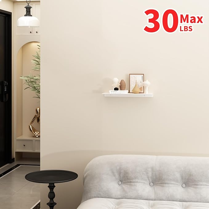 JOOM White Metal Floating Shelf - Small Bathroom Display Shelf for Wall Storage (White, 16 in)