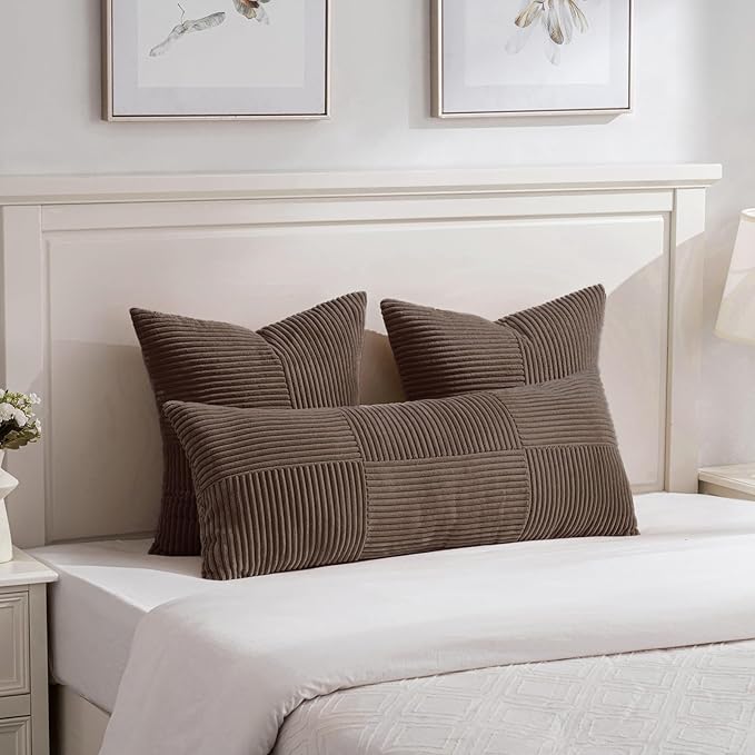 Fancy Homi 2 Packs Dark Brown Decorative Throw Pillow Covers 20x20 Inch for Living Room Couch Bed Sofa, Rustic Farmhouse Boho Home Decor, Soft Corss Corduroy Patchwork Accent Cushion Case 50x50 cm