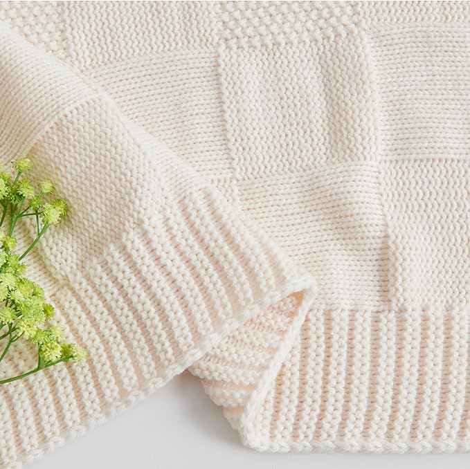 - DESIGN & STYLISH:The checks knitted pattern integrated with seed-stitch knit looks more classic and cute.This unique design gives the throw blanket a homespun look that's relaxed and inviting.This knit design is equally soft and chic, keeping you warm in style. This cream white throw blanket will look amazing draped over any couch or over the end of a bed to provide that sumptuous cozy look