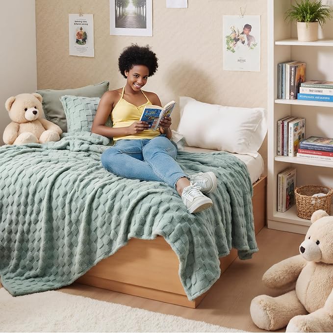 - Exquisite Textures: The soft fuzzy texture and checker design add style without being loud. Whether used as a throw or daily cover, it adds a warm touch to your setup—great for college dorm essentials for girls with a simple aesthetic.