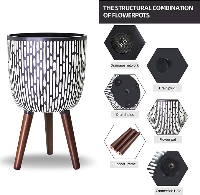 - Elevated & Drainage Design: This large planters for indoor plants is designed with legs that raise it off the ground, adding height and visual interest to your plant display; The bottom of the pot is designed with drainage holes. ensure your plants stay healthy.