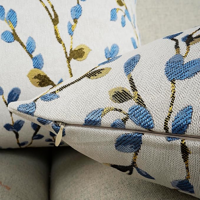 YOUR SMILE Classical Embroidery Jacquard Blue Square Decorative Throw Pillow Case Cushion Cover,12x20 inch