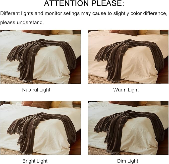 - 【FANTASTICAL DESGIN】LIFEIN throw blanket for couch nicely neutral solid knit design and well-arranged rustic farmhouse style fringes, this chenille knitted throw blanket is in kinda dark brown, which is a pretty easy way to match your room to add an extra solid gold boho feature, don't you want have a dark brown throw blanket for your home decor?