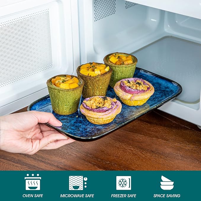 - 【Eye-Catching Platters】Set of 4, Measured 11 *6.6 * 0.7 inch. Crafted by reactive glaze, The special glaze color collides the colors to the extreme within the scope of craftsmanship. Giving a stylish impression, it suits both the modern and the rustic natural atmosphere. Everything tastes better and the mood is better when using these platters.