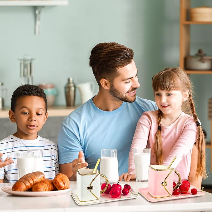 - Attractive and Elegant: the ceramic aesthetic coffee mug with saucer is characterized by handbag shapes and hand painted golden edges, and the color combination of pink and white with gold makes it more beautiful and graceful, which can bring both decorative and practical functions