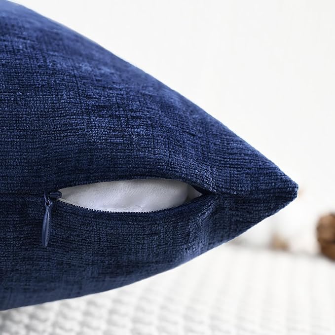 CaliTime Throw Pillow Covers Decorative 16 X 26 Inches Pack of 2 Cozy Chenille Cushion Cases for Couch Sofa Bed Living Room Home Navy Blue