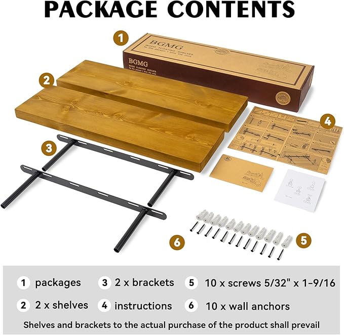 - EASY TO INSTALL: These floating shelves come with stainless steel galvanized invisible brackets, toggle bolts for drywall, and simple instructions to help you install them. These wall shelves are easy to assemble, requiring only two boards and the necessary screws and hardware. We also provide detailed instructions for quick and easy assembly!