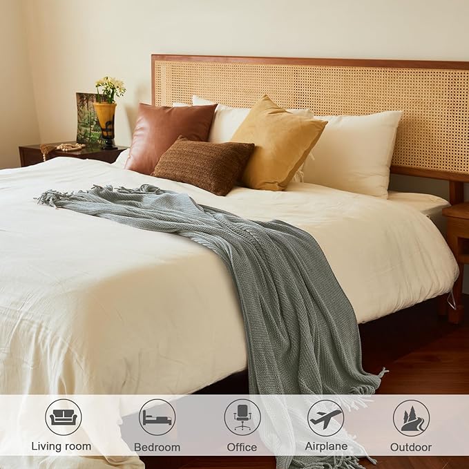 lifein Throw Blanket for Couch, Soft Boho Decor Bed Throw,Cozy Grey Knitted Chenille Small Farmhouse Lightweight Throw for Spring(Light Grey,50 * 60")