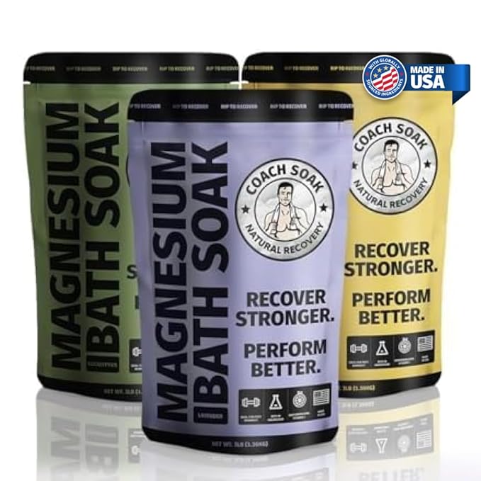 3 Pack Bundle: Coach Soak Recovery Bath Soak, Epsom Salt Bulk, Bath Salts Bulk, 3 Pack Bundle, Total of 9 Pounds (Eucalyptus, Lavender, Citrus)