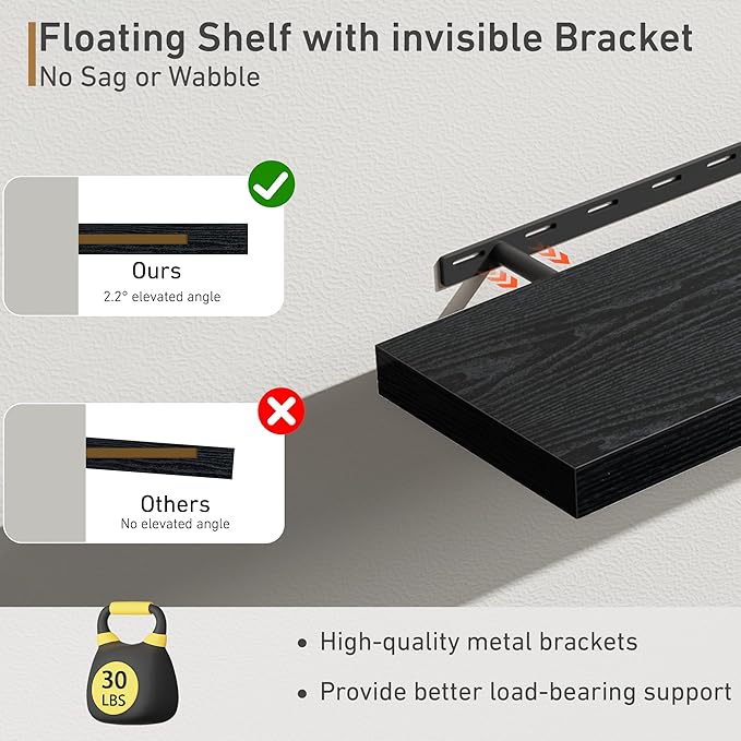 - Easy To Assemble - This floating shelves come with stainless-steel galvanized invisible brackets, toggle bolts for drywall & a simple instruction manual to help you install. The assembly of this wall shelf is very simple, only one boards and some necessary screws and other hardware, and we also have detailed instructions for you to view, you can assemble quickly. Please contact us with any questions or problems at Amazon or Fun Memories.
