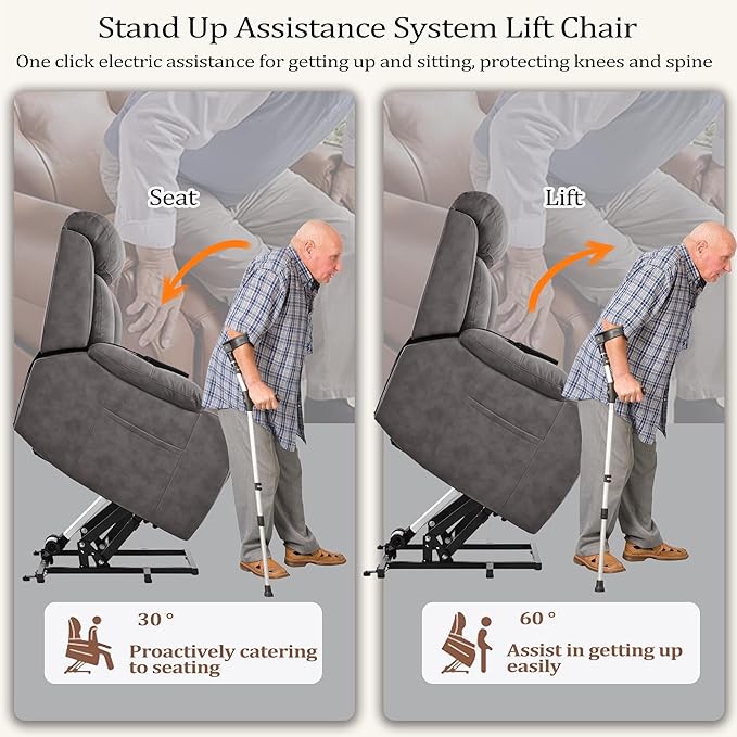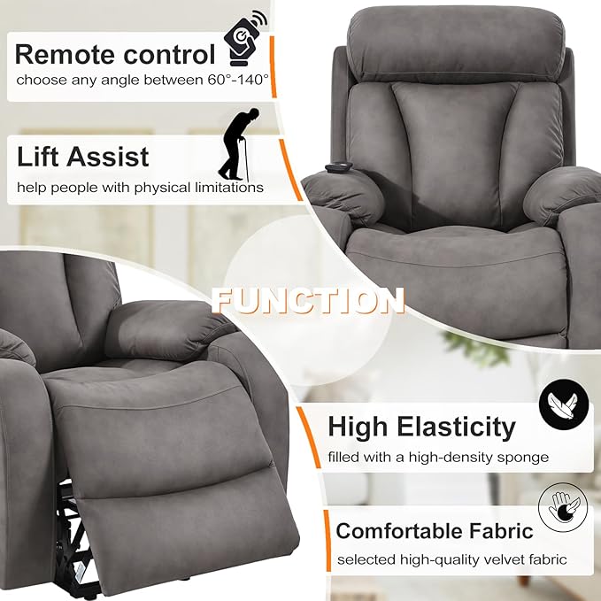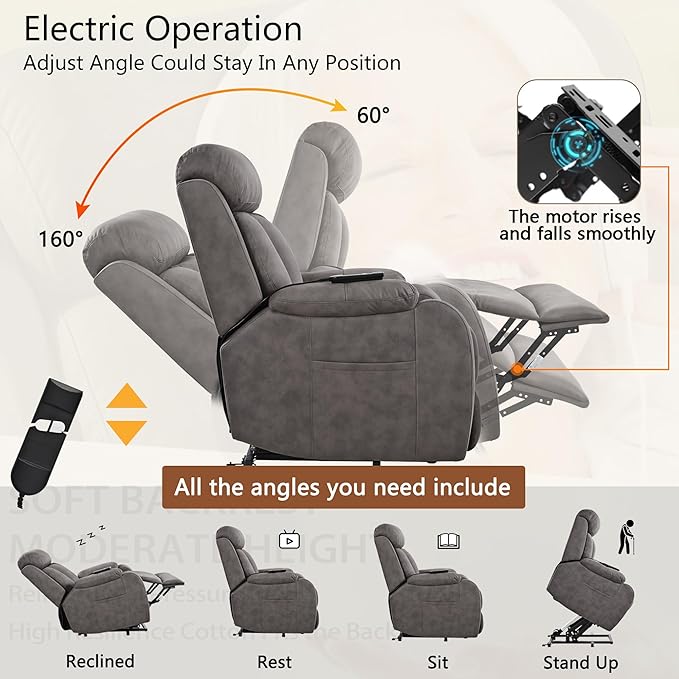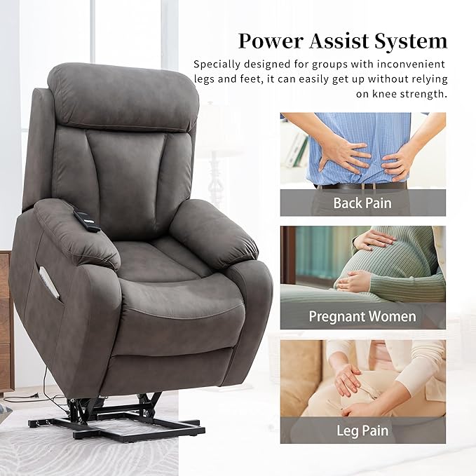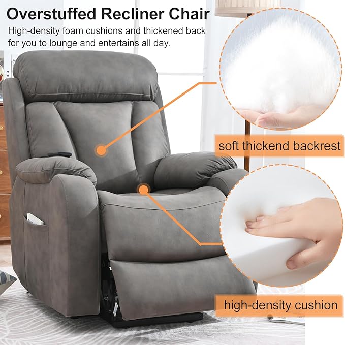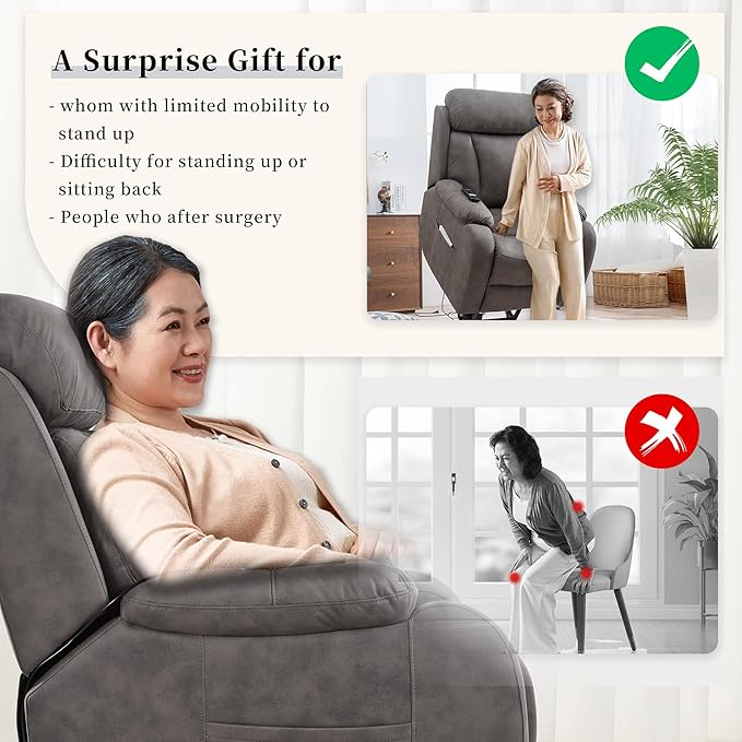 - Comfortable Design : With overstuffed padding, leatherair upholstery material, Thickened pillow and Soft seat design, this power lift recliner chair allows you to have a more comfortable sitting feeling.