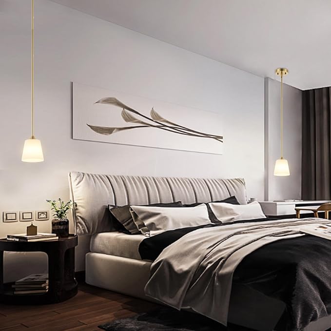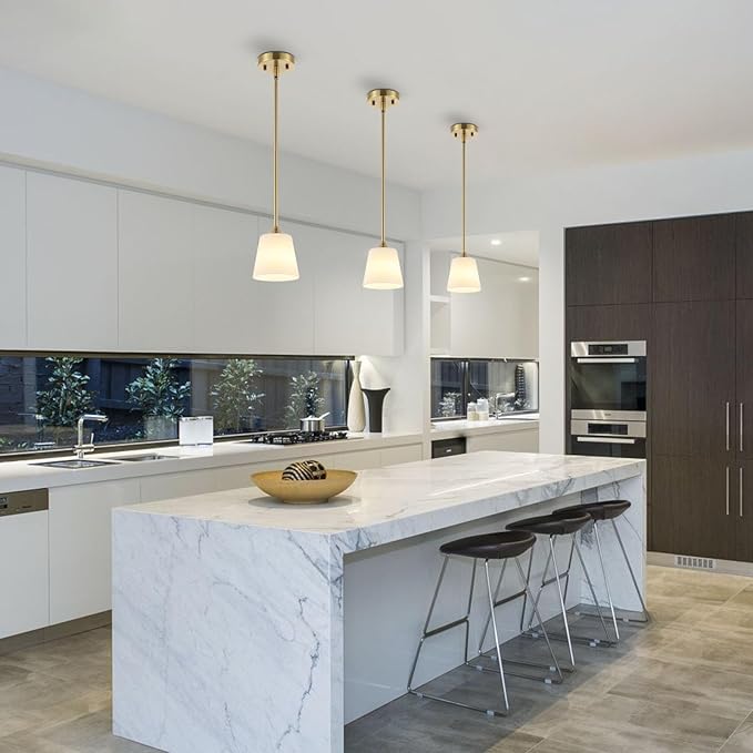 - 【3 Pack Modern Geometric Pendant Light 】Crafted from sturdy metal , featuring brushed brass finish with traditional hand glassblowing white geometric glass shade, BYOLIIMA gold chandelier no need to worry about getting oxidation and color fading. Simple and elegant,Perfect for mid-century decoration styles and combines the contemporary and retro style.