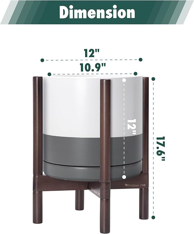 - A Complete Set: Mid-century ceramic planter, combined with a sculptural, solid wood stand that match perfectly together and looks great in anywhere.
