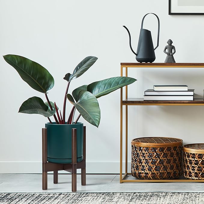- A Complete Set: Mid-century ceramic planter, combined with a sculptural, solid wood stand that match perfectly together and looks great in anywhere.