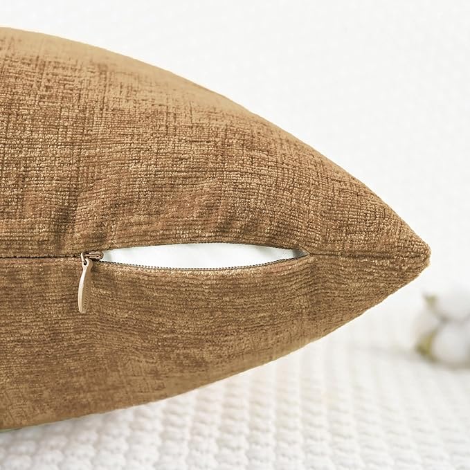 CaliTime Throw Pillow Covers Decorative 12 X 20 Inches Pack of 2 Cozy Chenille Cushion Cases for Couch Sofa Bed Living Room Home Apricot Brown