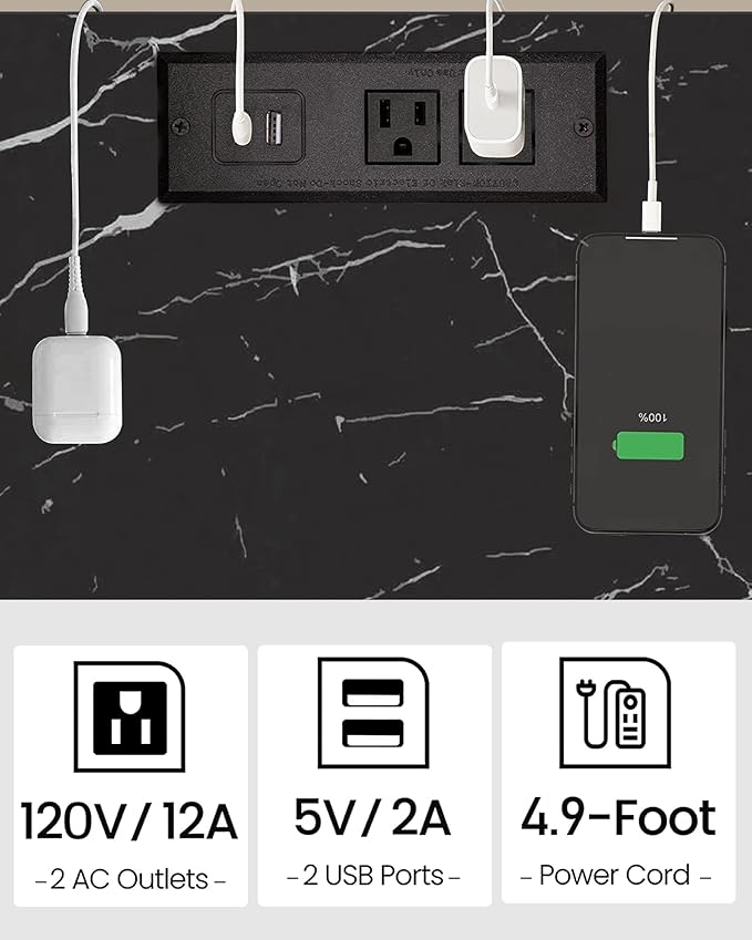 - [End Table with Charging Station] This side table with 2 AC outlets, 2 USB ports, and the 4.5 ft extension cord helps you charge your phone, tablet, lamp, and game console at the same time. Also, the distance between each outlet and port prevents adapters from blocking each other.