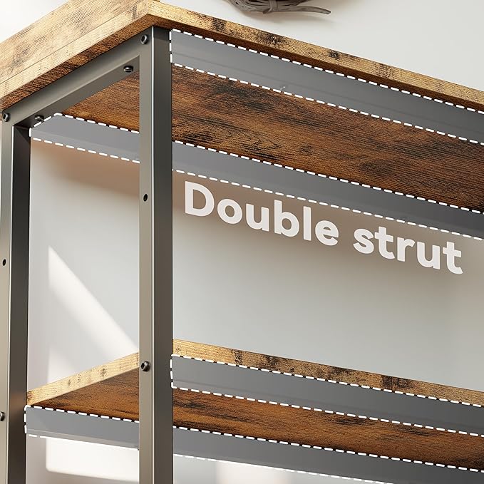 IRONCK Console Table, Sofa Table with Power Outlet, Farmhouse Hallway Table for Entryway, Living Room, Height Adjustable, Easy Assembly, Rustic Brown,32"