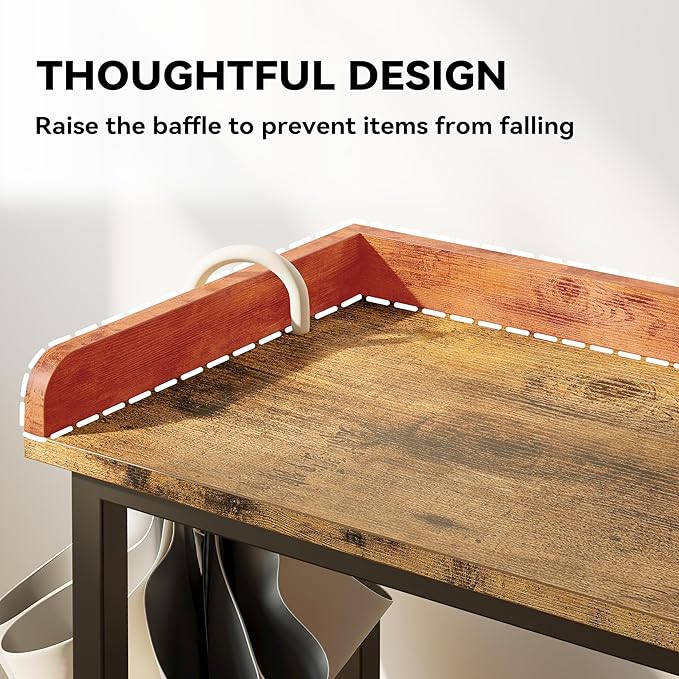 - Careful Design: More than other entryway tables , IRONCK entryway table has added a baffle design on the top to hang umbrellas on it; it also prevents items from falling