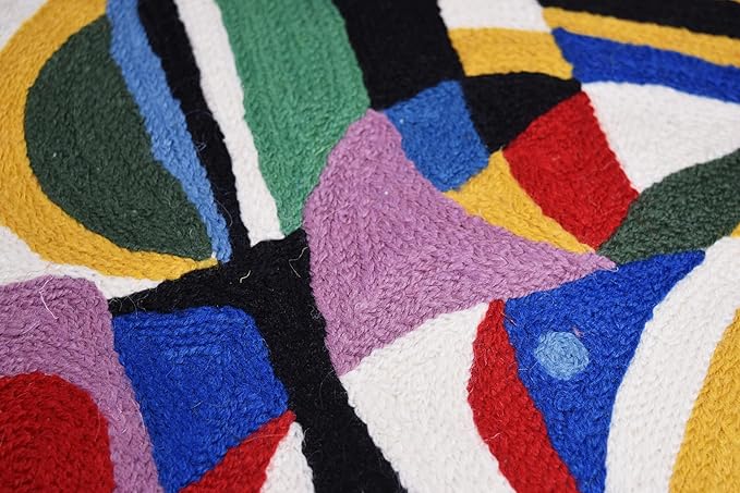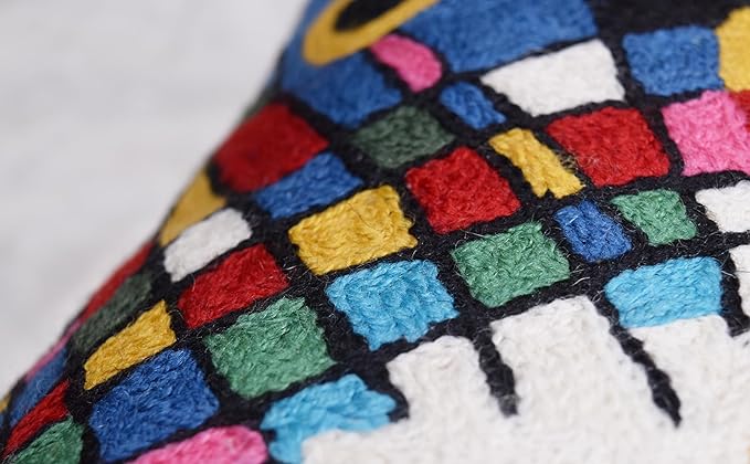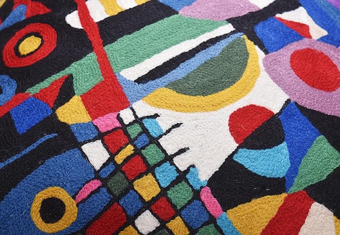 - β€ Modern Throw Pillow Cover - Hand Embroidered: Our vibrant decorative pillow covers draw inspiration from Kandinsky's artistry and are meticulously hand-embroidered using soft wool. Our skilled artisans devote painstaking attention to detail, creating an extraordinary abstract pillow that enhances your home decor. An up-close look at this contemporary accent pillow reveals the exquisite craftsmanship of fine chain-stitch hand embroidery.