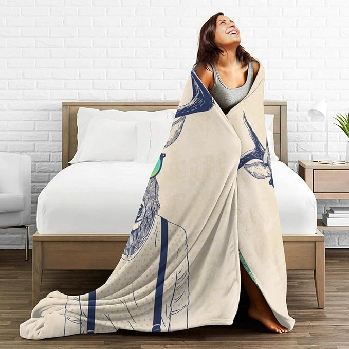 HGOD DESIGNS Deer Throw Blanket Deer Dressed up Like Cool Hipster Blanket Super Soft Flannel Throw Blanket Lightweight Plush Fuzzy Bed Blanket for Bedding Sofa and Travel 40"X50"