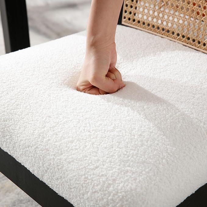 VESCASA Upholstered Dining Chairs with Square Rattan Back, Armless Padded Sherpa Fleece Cushion Dining Chairs with Wood Legs for Dining Room, Kitchen, Set of 2, Black Frame