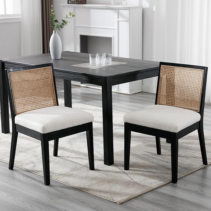 - MODERN DESIGN These modern dining chairs feature a padded cushioned seat, a square rattan back, and black wood legs. Simple but elegant, they will be a great addition to your home