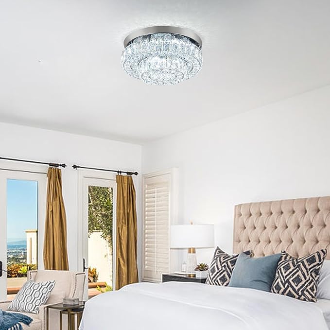 - β 3 Sides Crystal & Modern Design: this 2-tier crystal chandelier ceiling light is made of K9 crystals and polished sturdy stainless steel, featuring with 2 tier crystal rings and 3 sides crystals, you can see the lights coming out from every angles, you can also enjoy the bright lighting and luxury decoration at the same time .