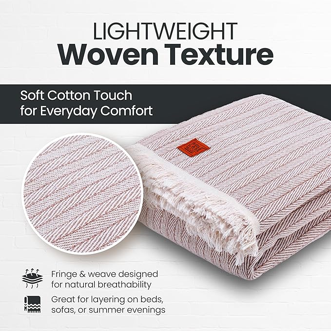 - CELEBRATE SUSTAINABLE STYLE: Made in Turkiye with recycled cotton, this cotton throw blanket brings eco-conscious comfort to your home; the soft weave and fringe detail give this woven blanket for bed a rustic, decorative touch that layers beautifully in any space