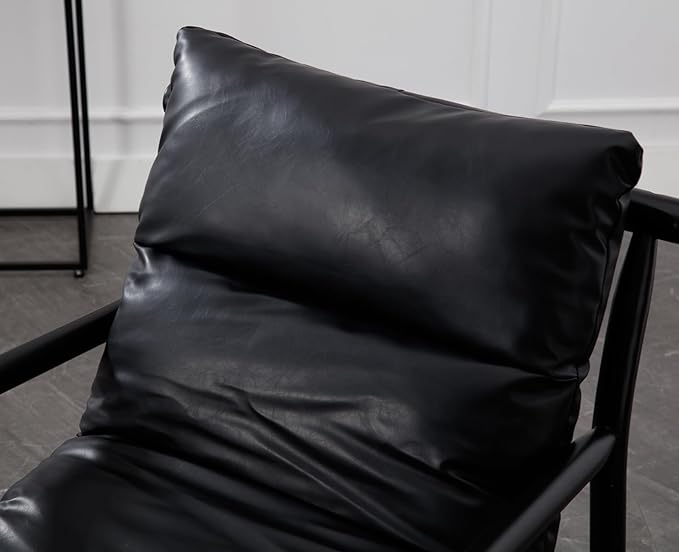 Kmax Modern Sling Accent Chairs Set of 2 Upholstered PU Leather Living Room Chairs Solid Wood Frame Arm Chairs Comfy Lounge Chairsfor Bedroom, Reading Room, Black