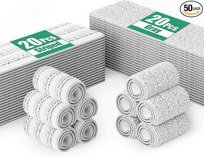 JOYMOOP Flat Mop Pads, Microfiber Mop Cleaning Pads, Washable Pads, Pads Replacement for JOYMOOP Flat Mop or Mop Bucket Set, Pack of 50 Refills 13inch - Grey and Stripe