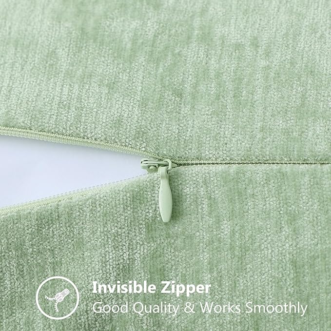 decorUhome Chenille Soft Throw Pillow Covers 18x18 Set of 2, Farmhouse Velvet Neutral Decorative Euro Pillow Covers with Stitched Edge for Couch Sofa Bed Home Decor, Sage Green