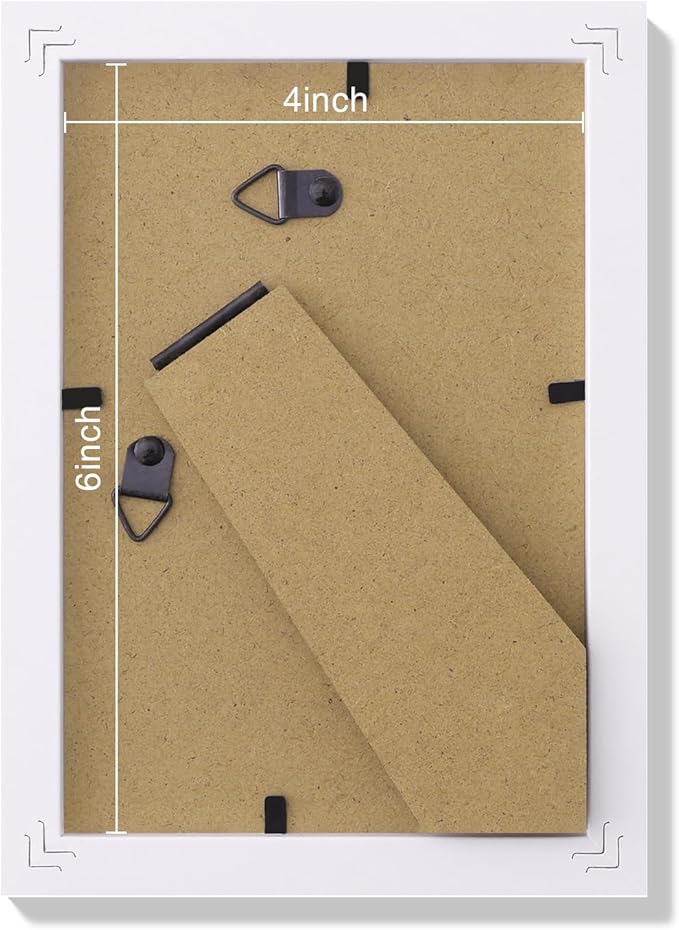 - Wall Hanging and Tabletop Display: Our 4x6 frames feature hanging hooks and an easel back for easy wall mounting or tabletop display, horizontally or vertically. Each set includes hanging nails for effort and less photo display