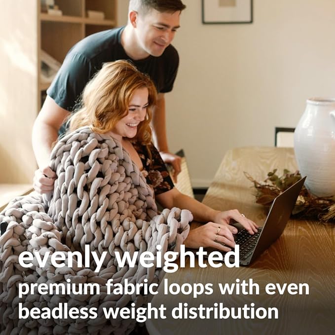 - WHISPER SOFT EMBRACE: No more sleep disruptions from noisy glass beads. Our beadless Nuzzie chunky blanket uses a plush fabric filling that stays uniform, presenting both visual charm and tactile comfort. Night after night, sink into the calming hug of an evenly distributed weight.