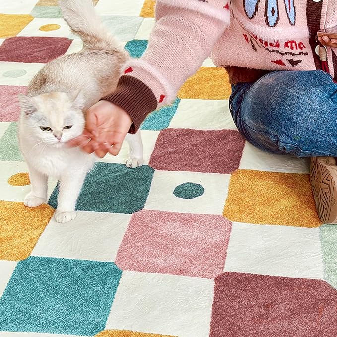 - Warm Vintage Colorful Design: Adorned with delightful diamond lattice splicing pattern against a soft cream bottom, this rug adds a playful charm to children's rooms and infuses vitality into adult spaces