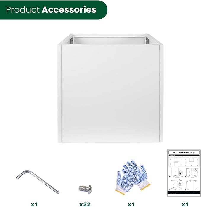 - Galvanized Steel Planter: 20" W x 20" L x 20" H. Heavy Duty Galvanized Steel Planter. Easy to Install. Package: 4 sides and a bottom surface with 1 drainage hole, Installation Manual x 1, M5 Allen wrench x 1, screw x 22, gloves x 1.