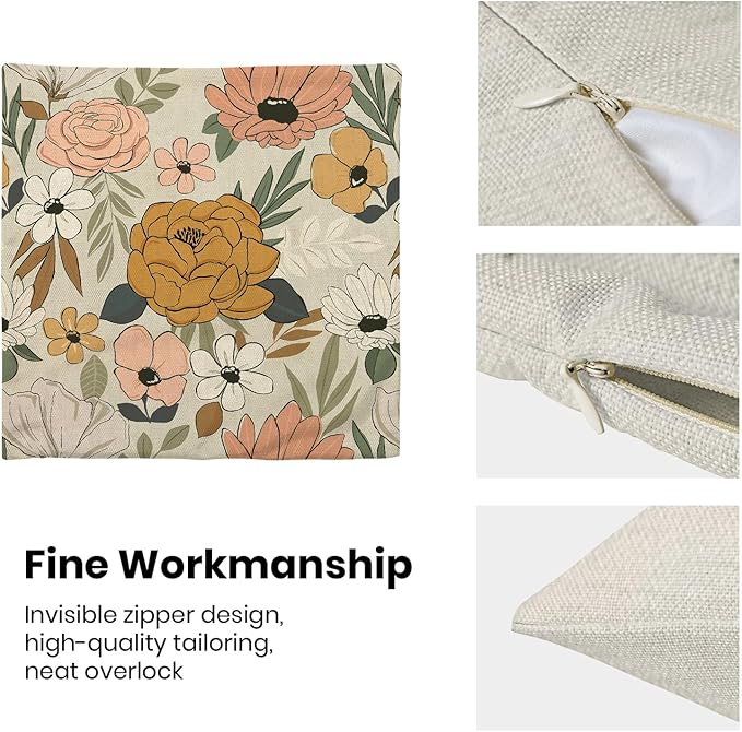 - 【Spring Pillow Covers】 Our floral throw pillow covers 18x18 inch are made of excellent breathable polyester linen fabric. The cream decorative pillow covers is durable, soft and skin-friendly. The plant outdoor pillow covers adopt exquisite edging technology and four sides of our floral pillow covers are sewn firmly, which is not easy to open the line.