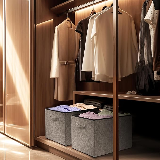 SIMPLE HOUSEWARE 15 x 13 Inch Collapsible Fabric Storage Bin with Handles, 2 Pack, Dark Gray