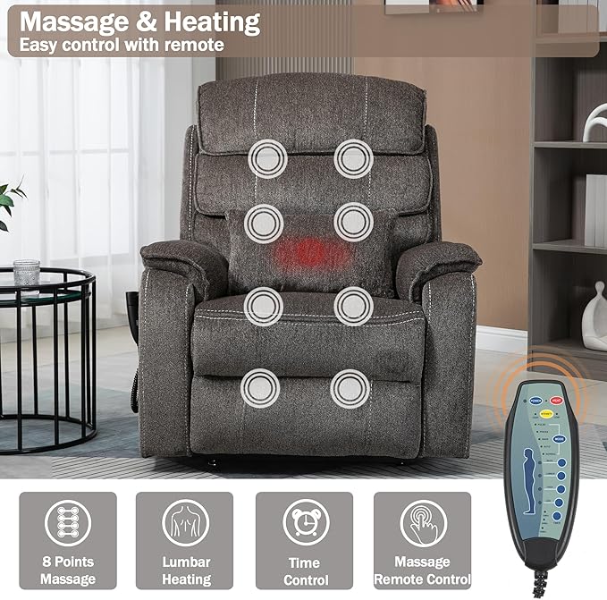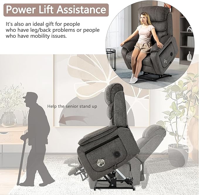 - 【Power Lift Assistance】Excellent lift chairs for elderly and adults. Counter-balanced lift mechanism to assist the senior stand up easily, smoothly adjust to lift or reclining position you prefer by pressing buttons (Recliner chair max reclining angle: 180°). It's an ideal gift for people who have mobility issues,looking for extra comfort.