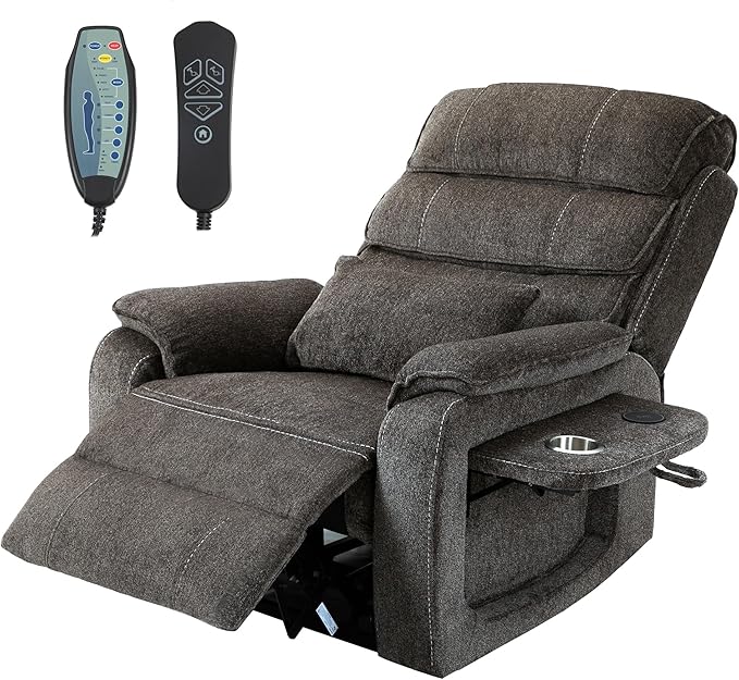 Power Lift Recliner Chair for Adults Elderly Chenille Lay Flat Recliners with Massage Heat, Extended Footrest, Wireless Charging Device, USB Ports, Cup Holder, Lumbar Pillow Up to 400LBS