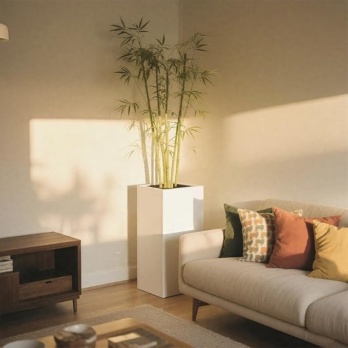 - REMOVABLE INSERT SHELF - Our White Metal Planter suits for plants of different heights.our tall steel planter comes with a removable insert shelf. Additionally, there have two drainage hole,ensures optimal plant health.