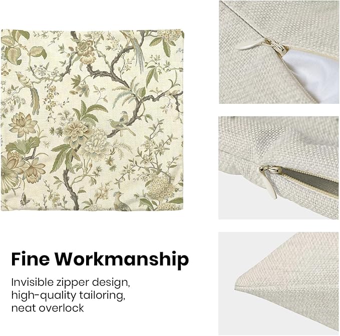 - 【Spring Pillow Covers】 Our Chinoiserie floral throw pillow covers 20x20 inch are made of excellent breathable polyester cotton fabric. The sage green floral decorative pillow covers is durable, soft and skin-friendly. The plant outdoor pillow covers adopt exquisite edging technology and four sides of our floral pillow covers are sewn firmly, which is not easy to open the line.