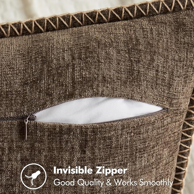 - UNIQUE DESIGN: Designed with brown linen stitching around the edges and goes well with chenille fabric, which adds character to the decorative pillow covers and provides a modern farmhouse style to your room.