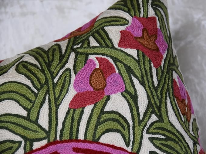 - πΈ CREAM FLORAL FRENCH STYLE PILLOW COVER - HAND EMBROIDERED: Elevate your home decor with our exquisite Cream Floral French Style Pillow Cover. Crafted by the finest artisans, these hand-embroidered floral pillows draw inspiration from contemporary modern floral art designs. Each stitch is meticulously executed in soft wool, resulting in a masterpiece that adds an extraordinary touch to your home decor. Immerse yourself in the fine chain-stitch hand embroidery that adorns the entire front side