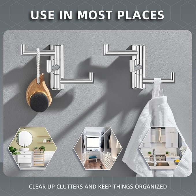 - KEEP NEATNESS: swivel towel hook with 3 arms allowing for at least 3 items to be hung at once as an organization helper, which not only eliminates clutter but also saves space