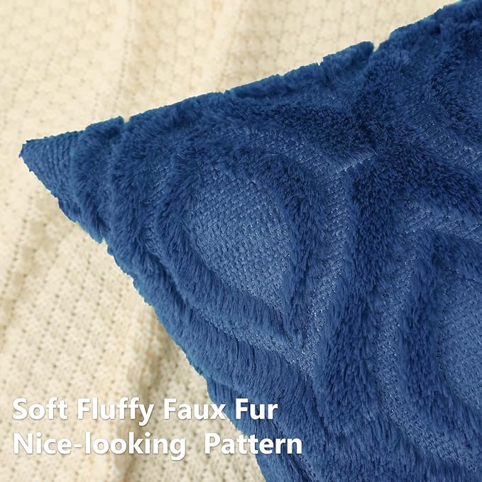 decorUhome Fall Throw Pillow Covers 18x18 Inch Set of 2, Soft Plush Decorative Faux Fur Dark Blue Solid Couch Pillow Covers, Accent Farmhouse Neutral Square Euro Pillow Cases for Sofa Bed Living Room