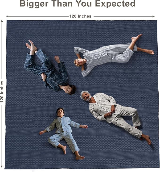 PHF 100% Cotton Waffle Blanket Oversized King 120"x120", Lightweight Breathable Extra Large 10'x10' Summer Blankets for Bed, Giant Big Luxury Aesthetic Woven Bedding for Home Decor, Dark Navy